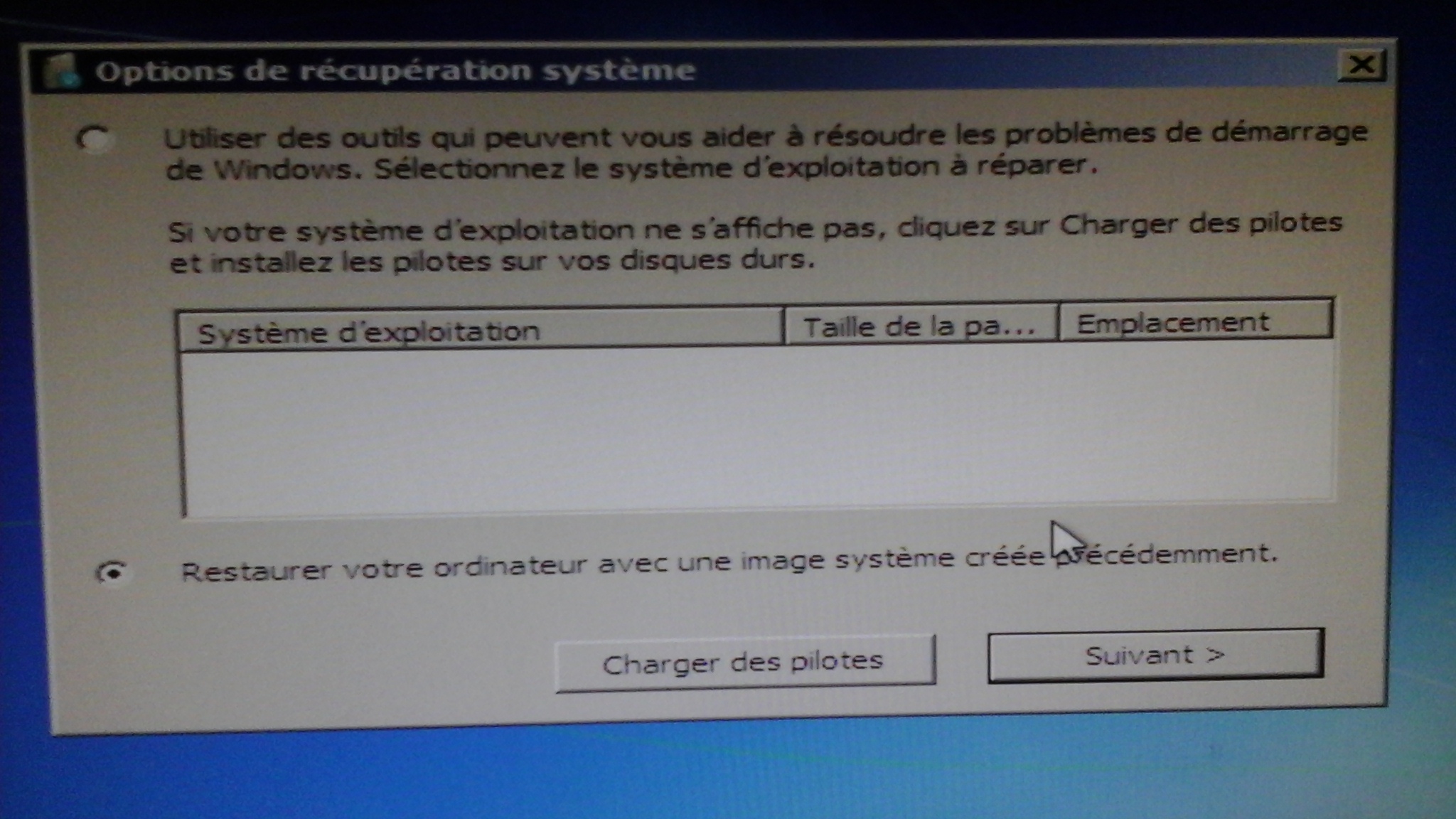 Récupération système : impossible de réparer le système de démar