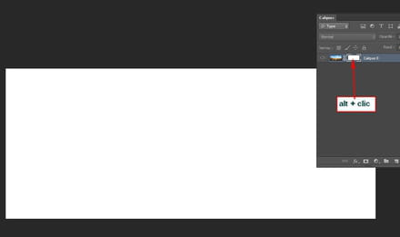 - clic + alt sur la vignette du masque (l'image passe au blanc):