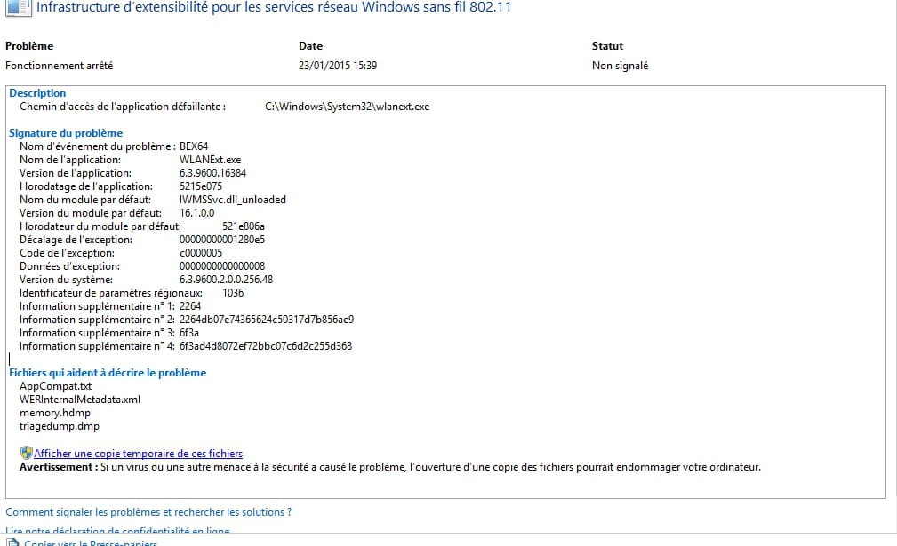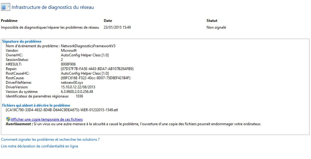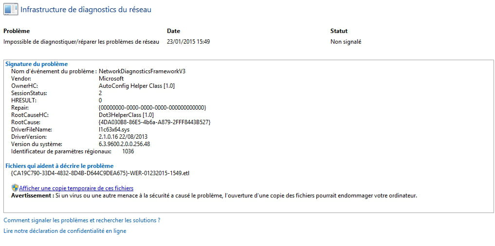 - Impossible d'utiliser le réseau wifi