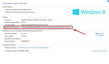 J'ai Windows 8 sur mon PC et je n'est pas d'écran tactile.