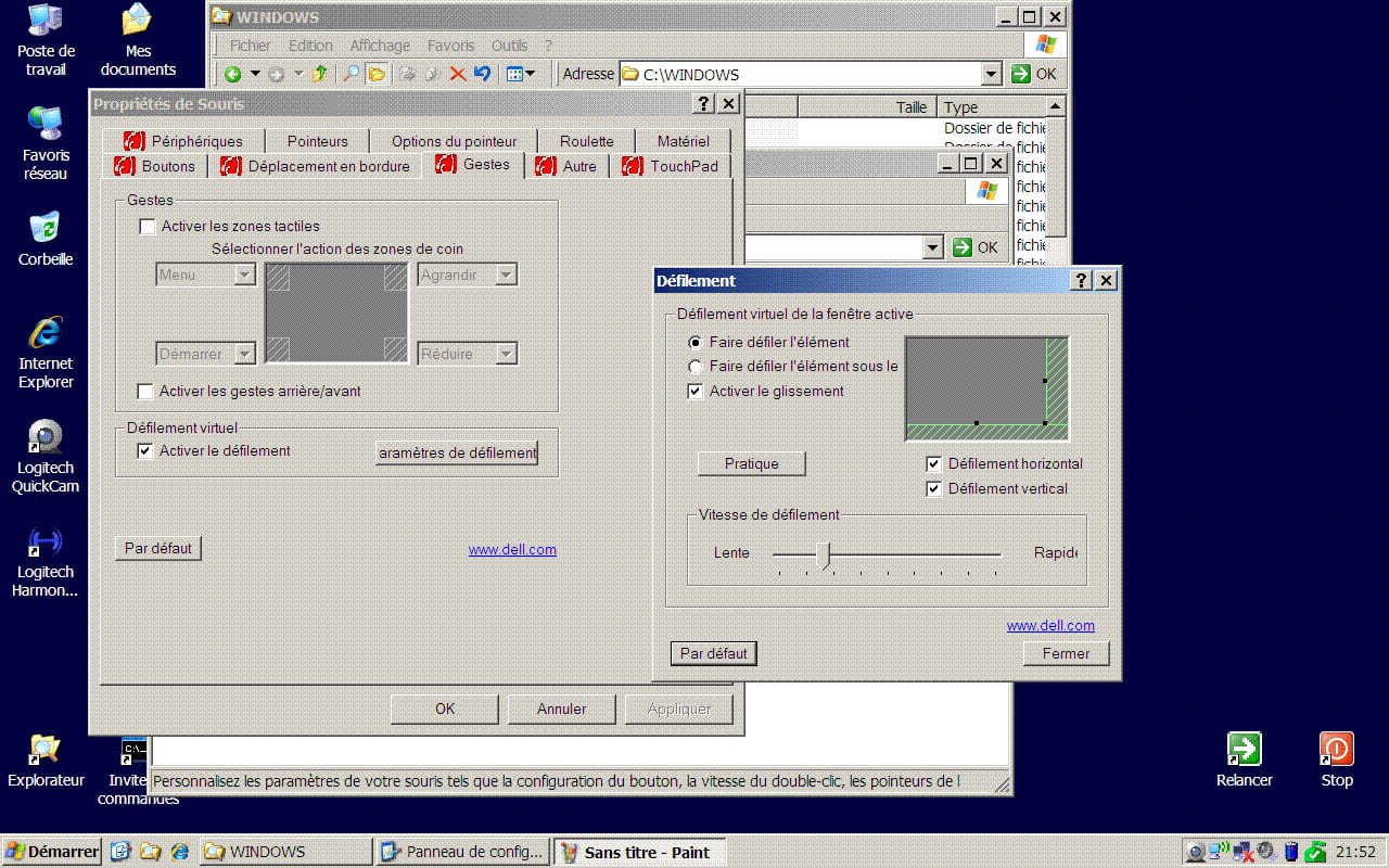 Le père Noël m'a offert un pc Dell inspiron qui va bien, merci. On ne peut en dire autant de mes petits nerfs, mis à rude épreuve par un problème tout simple : l'ascenseur de défilement d'écran du touchpad refuse de fonctionner. Le "reste" du touchpad fonctionne bien.
