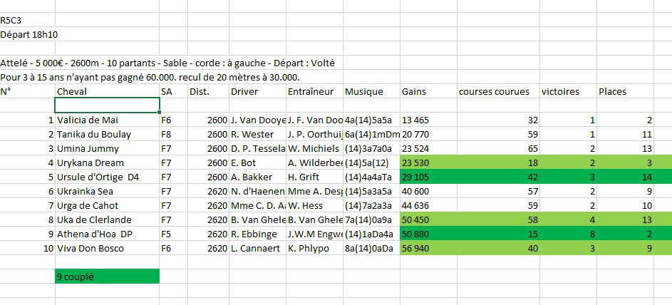Donc chaque jour, je suis obligé d'aller sur un site spécialisé, je copie/colle la liste des chevaux partants sur EXCEL.