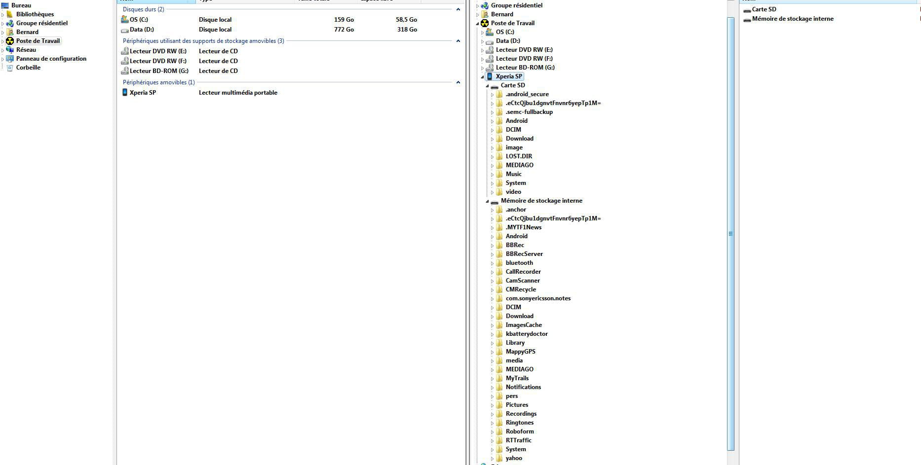 si tu as une carte mémoire il se sous divise en deux sous dossiers après il faut chercher dans: média, photos ou autres