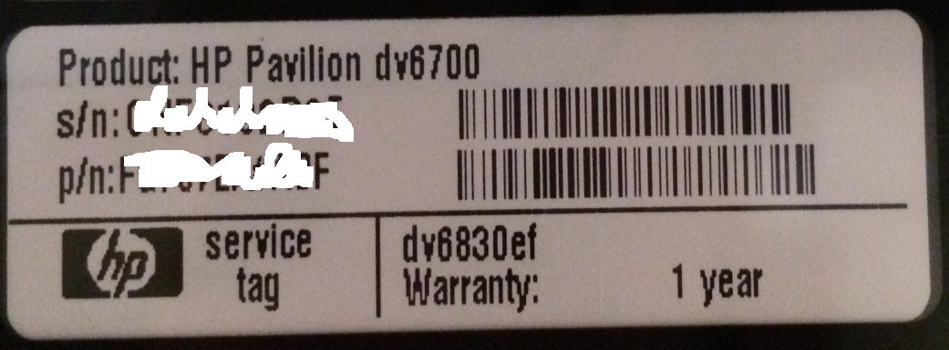 Product: HP Pavilion dv6700 et plus bas la même étiquette dv6830.