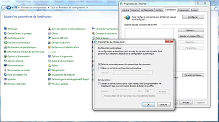 Panneau de configuration / Option Internet / Connexions / Paramètres réseau