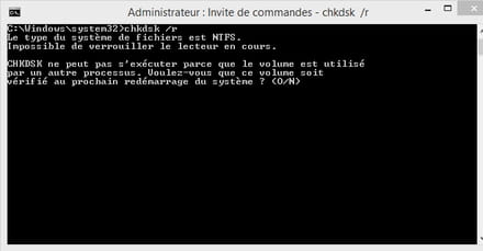 Suite à l'invite de commande, j'ai redémarrer mon PC, la vérification a duré même pas 3s puis lorsque je suis mis sur le bureau. J'ai eu un message comme quoi, Windows exploreur à cesser de fonctionner et je ne pouvais plus rien faire. DOnc j'ai dû redémarrer mon PC.