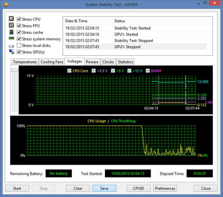 je viens de faire un test de stabilité de 3 min environ avec aida64 extreme voici les resultats pour les voltages:
