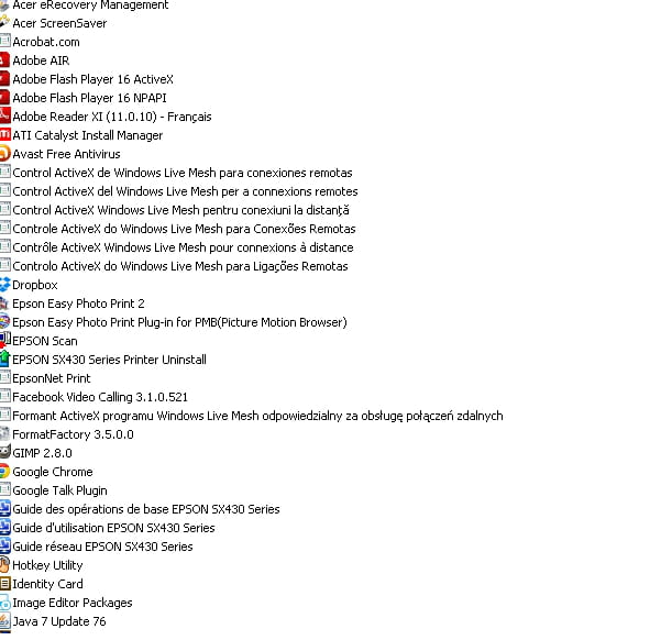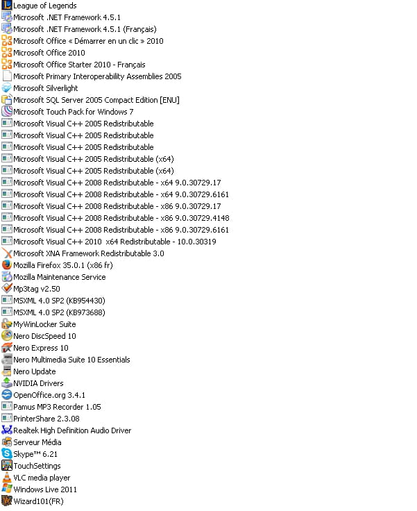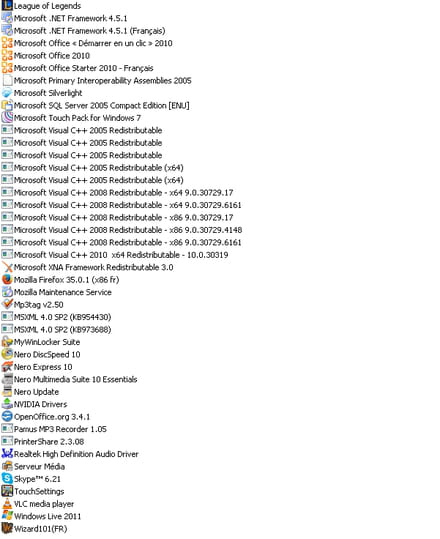 - Logiciels a désinstaller