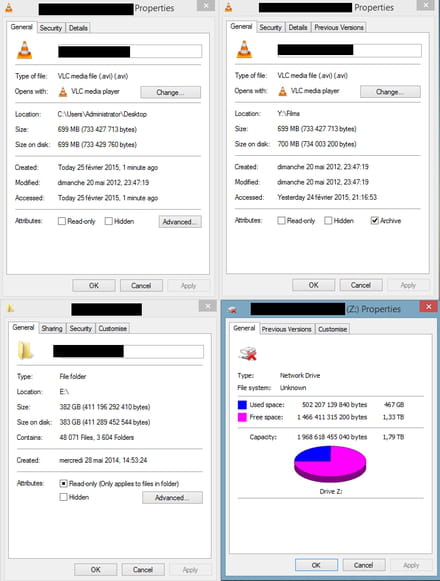 Je dispose d'un serveur SAMBA (ubuntu) qui fait office de serveur de sauvegarde. Le soucis c'est qu'un fichier sous Windows prend visiblement moins de place que sous linux... Enfin dans mon cas.