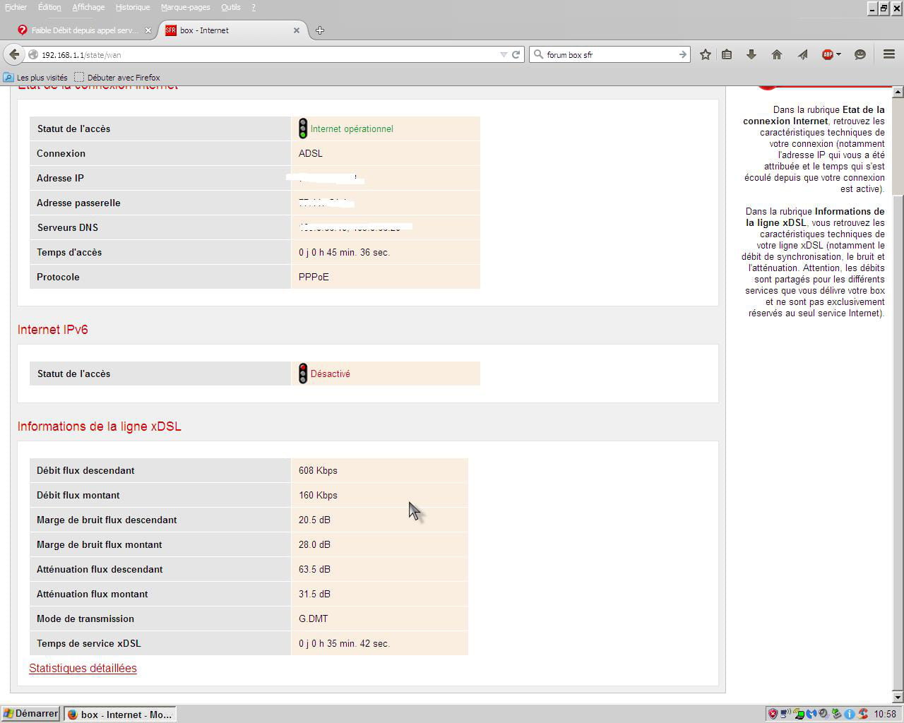 - Faible Débit depuis appel service Client SFR
