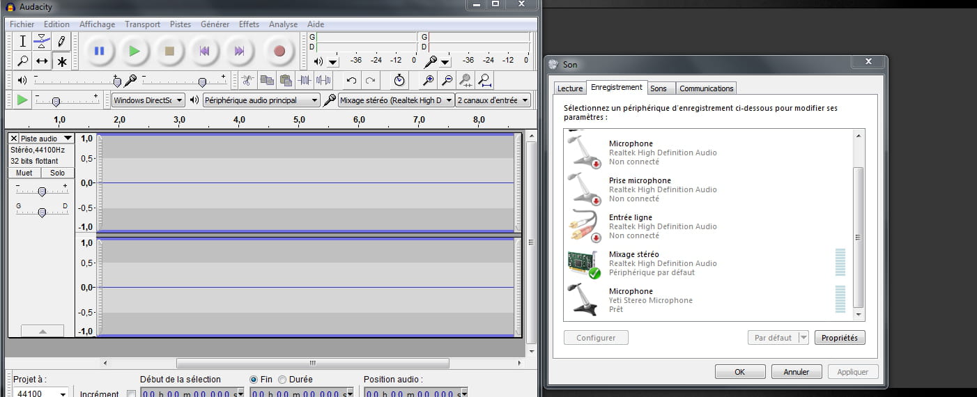 Bonjour,je cherche depuis quelques temps sur le net les solutions pour pouvoir enregistrer le son de mon ordinateur (via Audacity par exemple) , toute les réponses que j'ai pu trouvé c'était d'activer le mixage stéréo et de le sélectionner dans l'enregistrement.Apres avoir fait tout ça ,rien ne se passe.