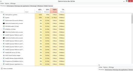 - Disque à 100% dans gestionnaire des tâches