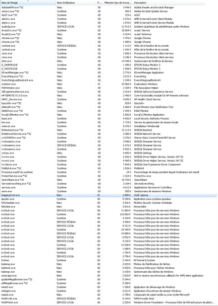 Par contre, au niveau des processus actifs :