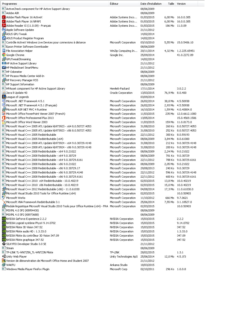 Je vous joint également la photo de la liste des programmes installés sur mon pc.