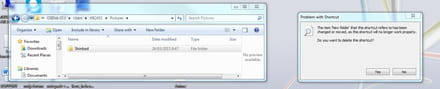 Ton problème est lier je pense a que ton raccourcis fichier est éronné soit ton dossier a bougé de place ou a changé de nom (comme dans l exemple )