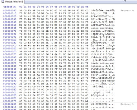 j'ai regardé mon secteur 0 et j'ai bien un MBR avec une partition.