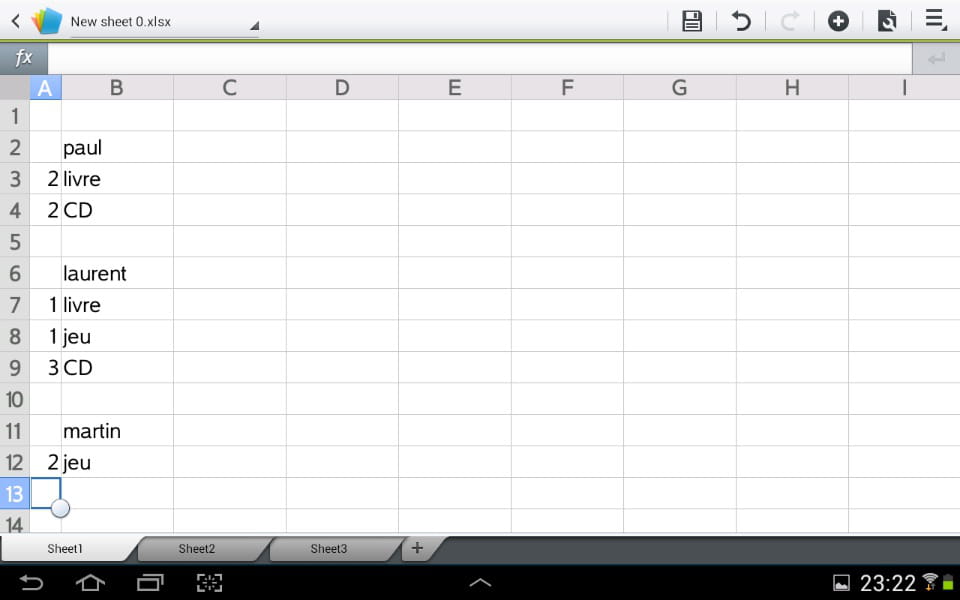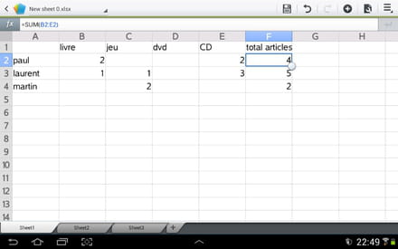 Ex: paul achete 2 livres et 2 CD, le tableau se crée automatiquement et fait la "liste" de ces articles