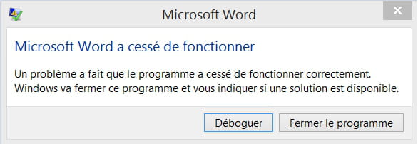 Dès que je quitte un des logiciels, j'obtiens donc les messages d'erreurs joints l'un à la suite de l'autre. En cliquant sur "Déboguer" la fenêtre se ferme mais rien n'a l'air de se passer. J'ai déjà désinstaller puis réinstaller Microsoft Office mais le problème reste.