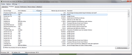 Donc je ne vois rien de particulier... A part des mise à jours en arrière plan, il n'y a rien qui pourrait ralentir ton ordi. Parmi les 100 processus, je suis sur que tu pourrais enlever certaines applications qui ne te servent à rien.