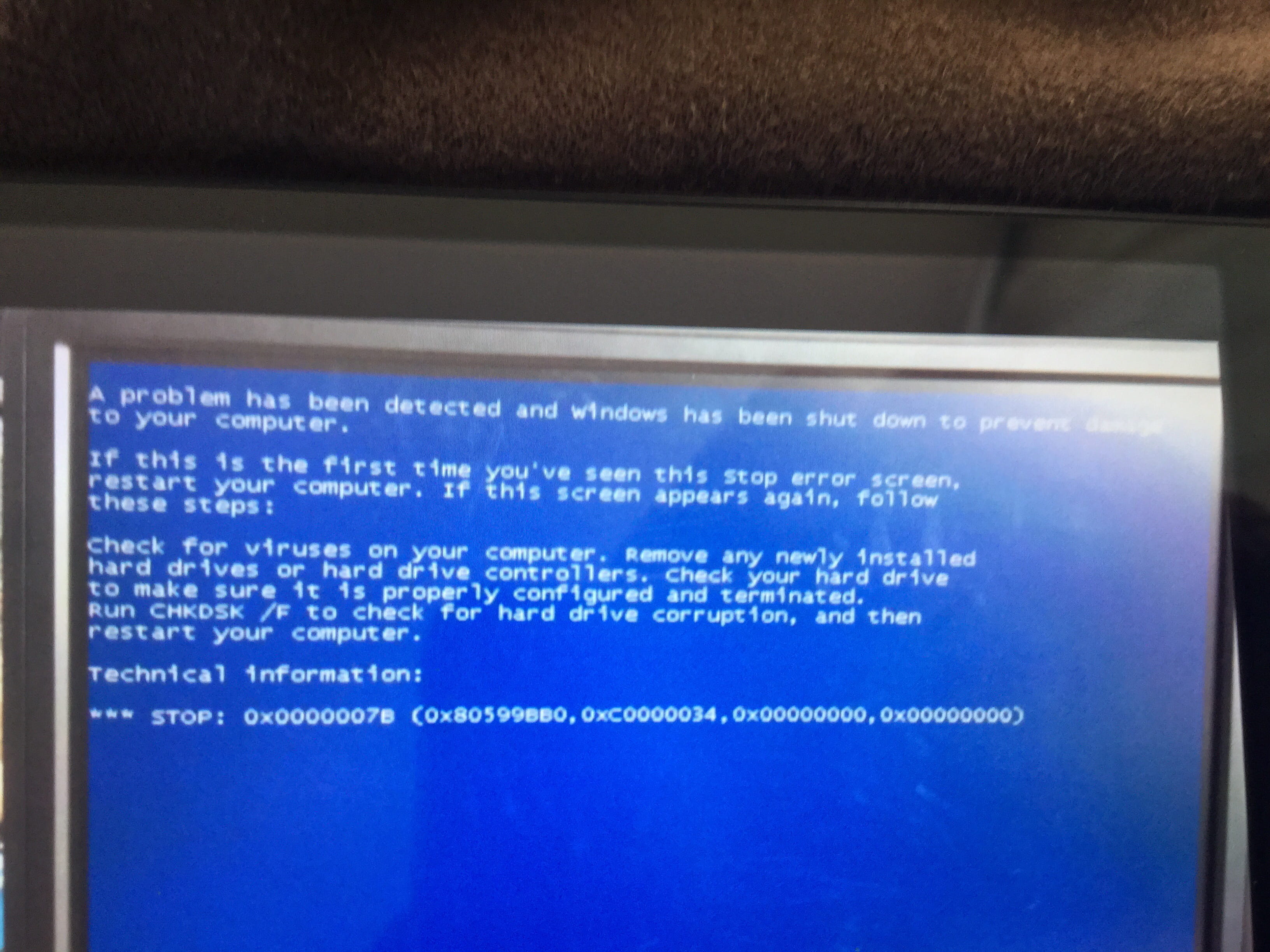 J'ai reussi a prendre en photo l'écran bleu.