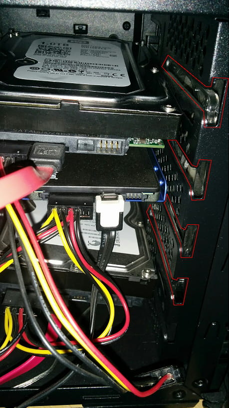 tous mes disques dur sont tordus et mal fixés, il me manque une sorte de rack, car ils ne sont fixés que d'un côté (et donc a droite ils tombent car non fixé sur le côté) : http://image.noelshack.com/fichiers/2015/16/1429186108-img-20150416-114934.jpg