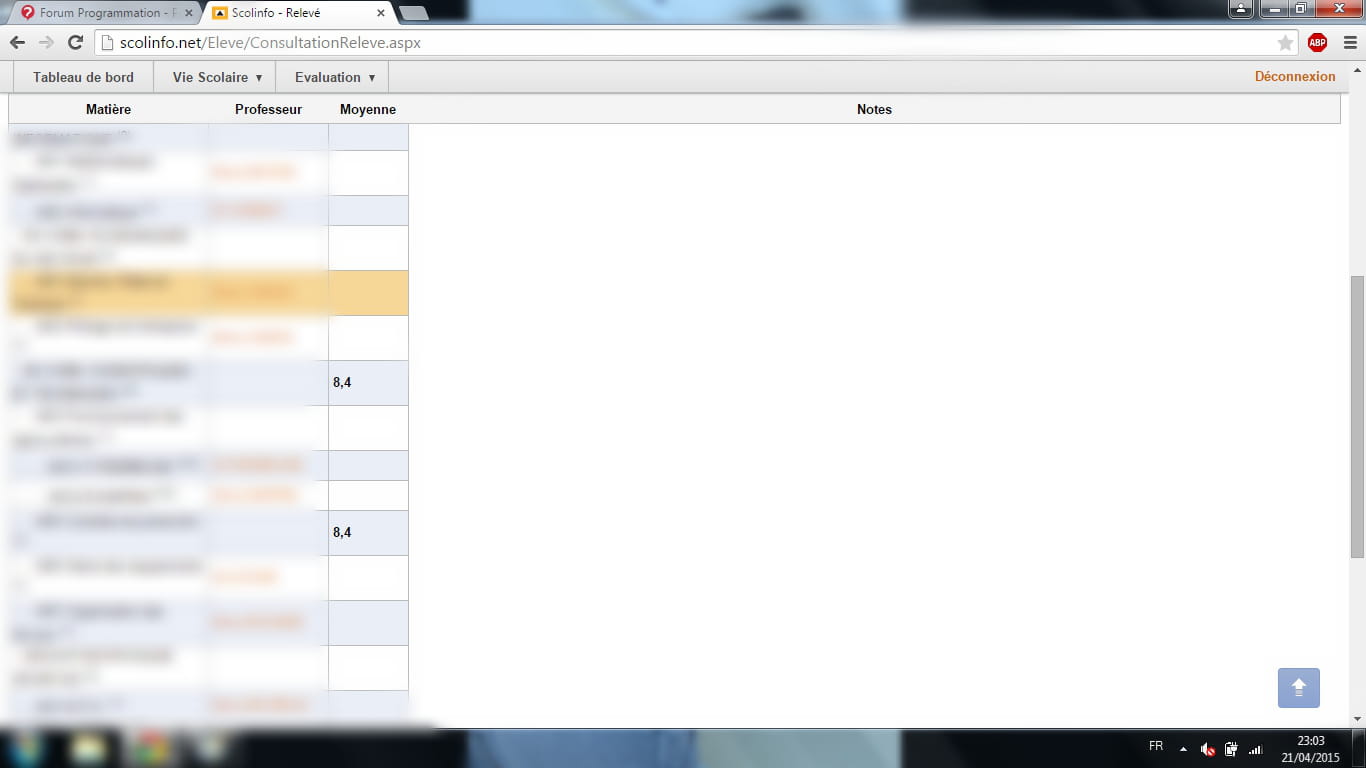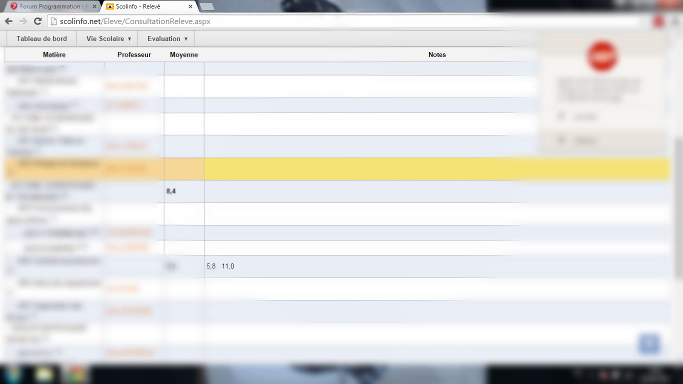 Je sais masquer les notes lorsqu'elle sont déjà affichées mais j'aimerai les masquer en prévision et pour cela je pense bloquer les cadres de la rubrique "Notes" correspondant aux matières à risques pour moi.