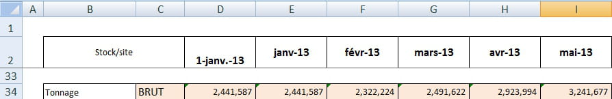 voici l'extrait de la base de données des stocks, je voudrais donc que la recherche V aille chercher le mois de février, et non mars.. comment faire?