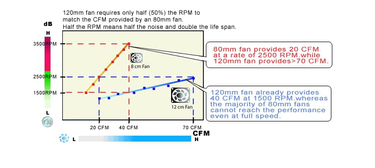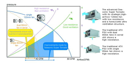 En effet les blocs ayant un ventilo arrière aspire l'air intérieur du boitier pour refroidir l'alim, augmentant ainsi inutilement la température de l'alim si le ventilo est trop petit.