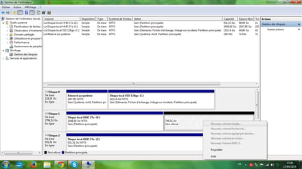 Je peux créer un volume avec la partition de 2To, mais je n'arrive pas à accéder à celle de 750Go. La mention "nouveau volume simple" est grisée.