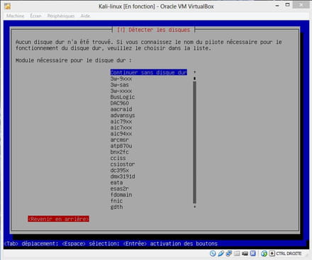 Je suppose donc que je dois choisir parmi la liste le module nécessaire, sauf que je n'ai aucune idée de ce que c'est, ni à quoi ça sert, et encore moins le quel je dois choisir pour pouvoir installer Kali.