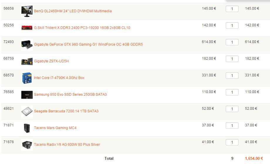 J'ai fais pas mal de recherche sur les composants informatique et j'ai selectioné la suivante configuration (en image). J'ai séléctioné la GTX 980 mais probablement je prendrai une GTX 970 pour économiser 230€ et peut être plus tard je ferai un SLI. Qu'est-ce que vous me conseillez?