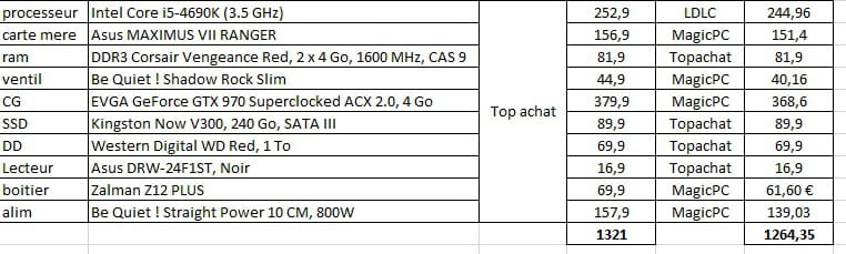 En modifiant certains composants, tu peux avoir moins cher chez TopAchat. Voici la configuration modifiée:
