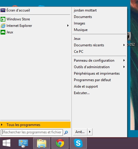 Mais d'après ta capture d'écran tu as installé un logiciel qui simule un menu démarrer, alors je ne sais pas trop ce que tu veux faire...
