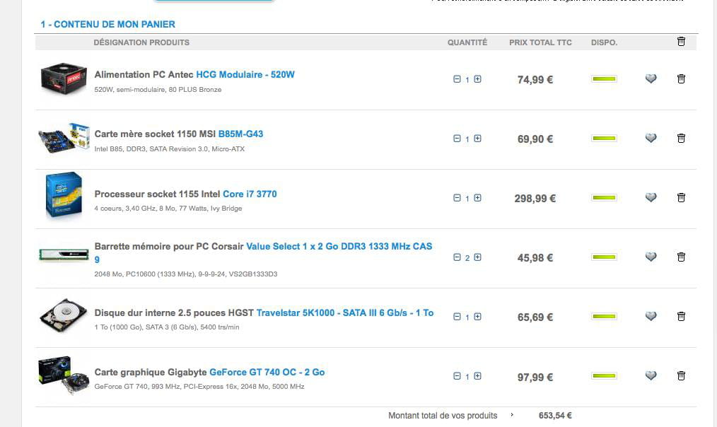 J'ai acheté il y a à peu près deux mois, des composants pour monter mon premier ordinateur moi même. Voici la config.