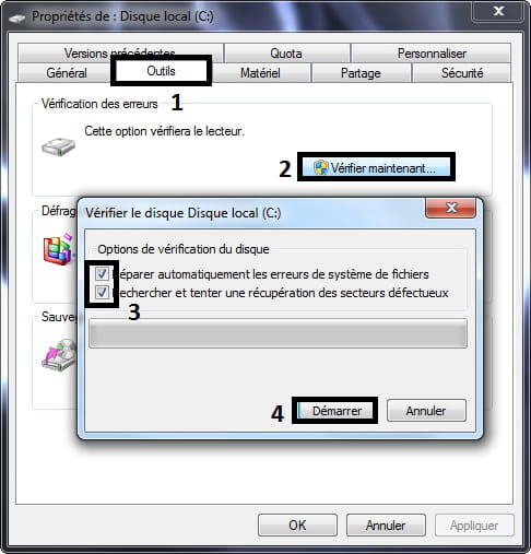 après "acceptation", tu redémarres le pc et tu ne touches a rien (le check disc va démarrer tout seul après +- 10 secondes)