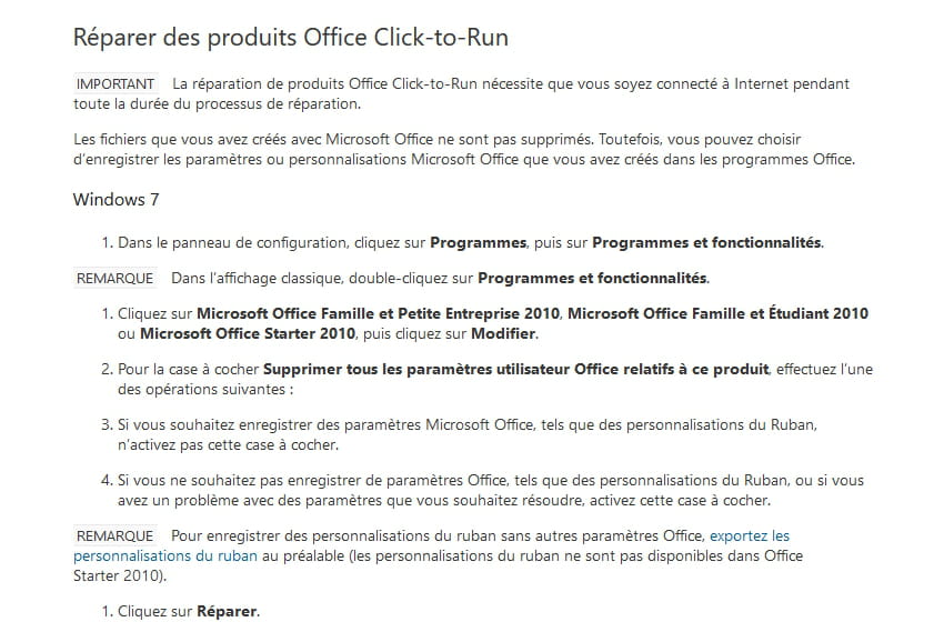 impossible d'ouvrir wordstarter 2010 réessayer ou réparer le produit dans le panneau de config