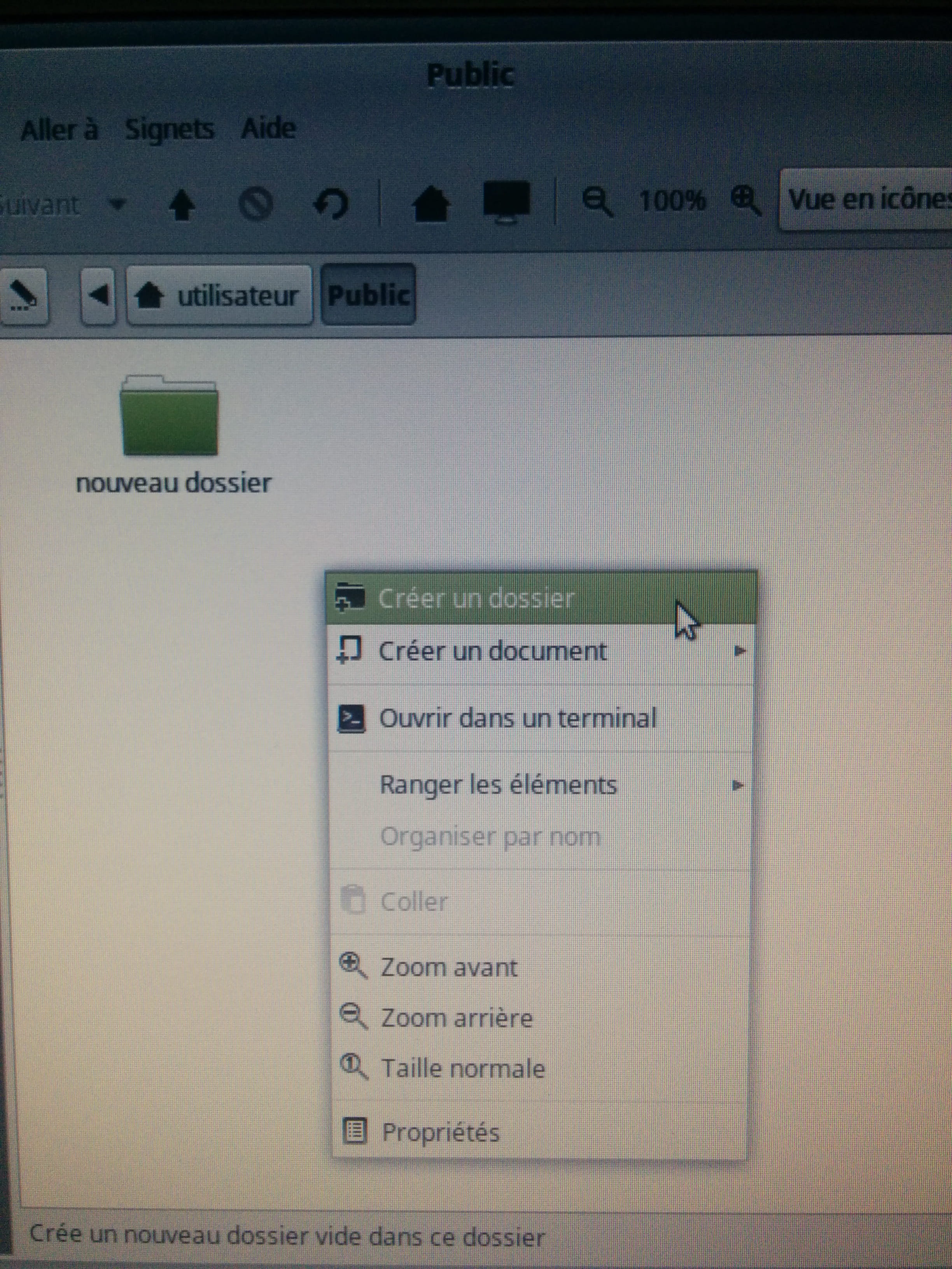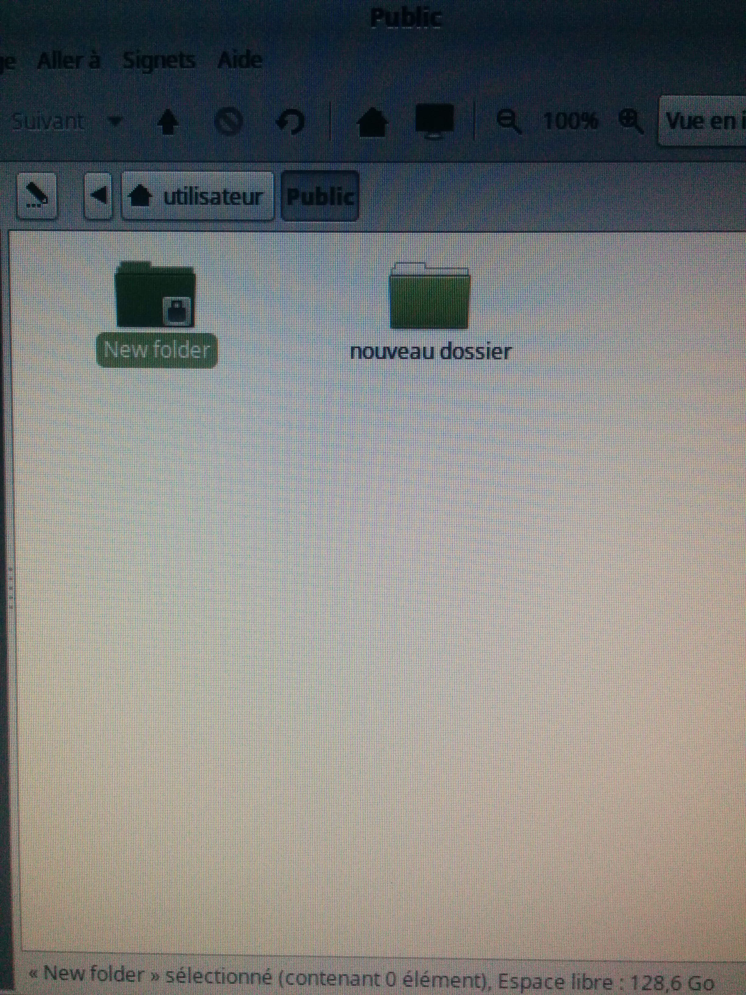 Alors que si je crée un fichier dans le dossier Public de Linux Mint depuis Linux Mint, il est disponible en lecture & écriture: