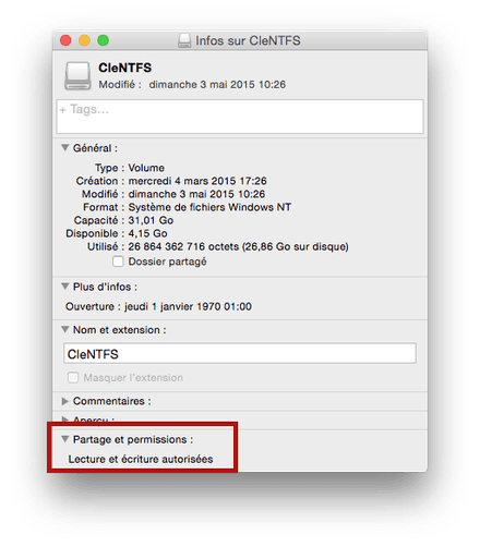 Problème Clé USB en lecture seule suite passage Mac à Windows