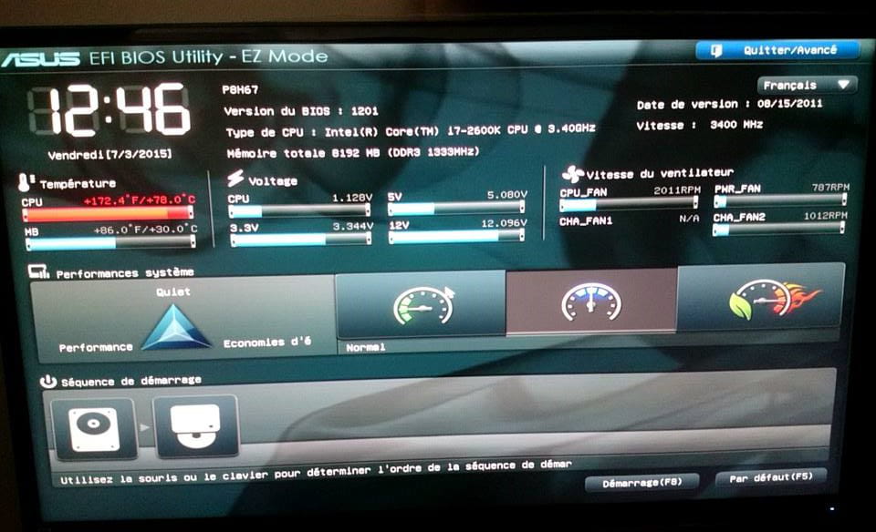 Ah oui et dans mon premier message j'ai omis de préciser que mon ordinateur au démarage m'affiche un écran me redirigeant vers le bios m'indiquant une température très éffrayante pour le cpu alors que mon ordinateur viens a peine de s'allumer donc je ne vois pas comment ces températures sont possibles les valeurs me semble quelques peu érronées :