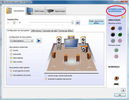 Normalement, tu as une icône de volume dans ta barre des tâches (probablement en bas à droite), tu fais un clic droit dessus -> périphériques de lecture.