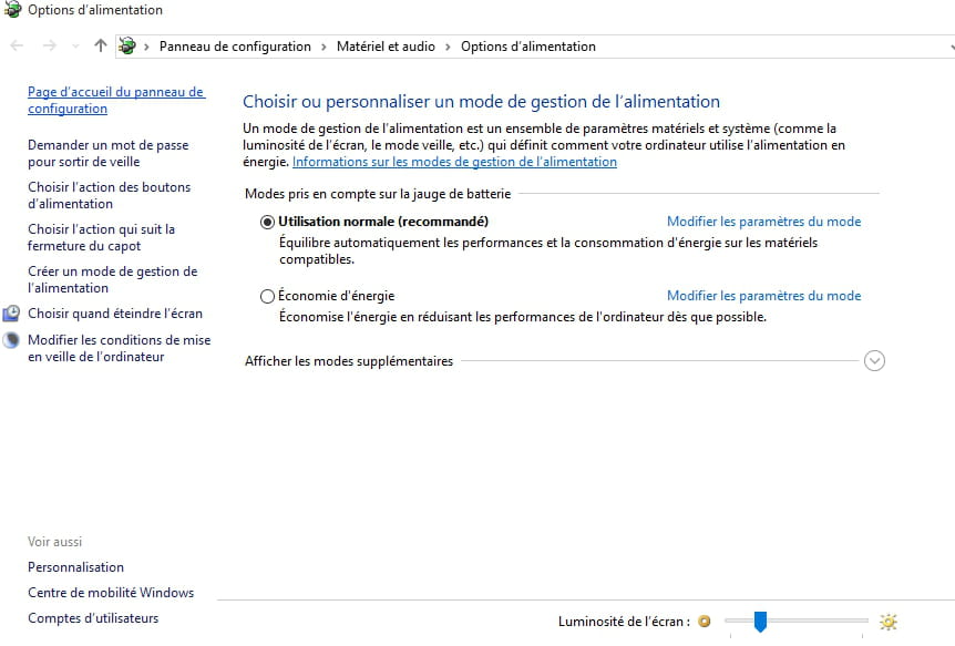 Problème batterie PC ("Votre plan actuel...")