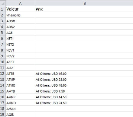 pour toute mes feuilles (hormis la 1ere), je voudrais récupérer le prix qui se trouve uniquement dans la 1ere feuille qui se compose d'une colonne "valeur" et d'une colonne "prix"