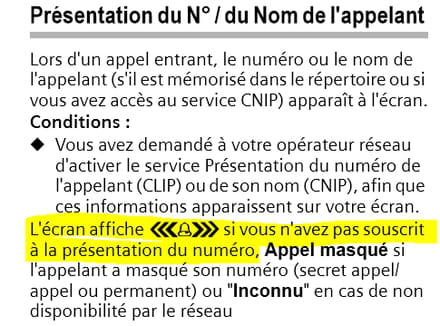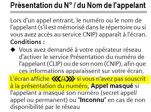 Quand mon téléphone sonne je n'étends pas mon interlocuteur mais lui m'entends. Quand il sonne un logo s'affiche sur le téléphone comme un petit sapin entre deux crochets <<>>