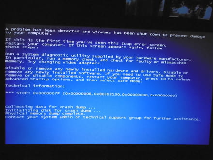 Mais voila depuis 24h mon ordi me fait des écrans bleus à répétition j'ai le code erreur 0x00000007F (0x00000008,0x803D3130, 0x000000000,0x00000000)photo en pj