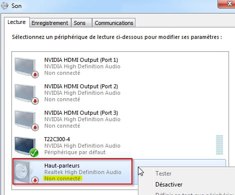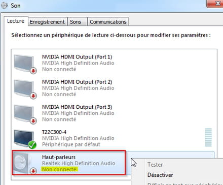 Pour mon pc, même si je branche en jack (mon casque ou mes enceintes 5.1) il considère comme "non connecté" les entrées sons.