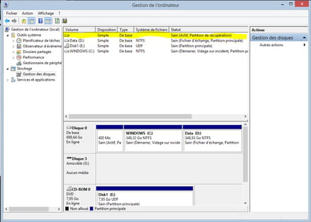 D'accord. Et depuis Gestion de l'ordinateur puis Gestion des disques, votre disque dur est-il reconnu ?