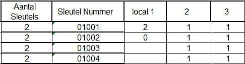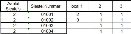 - Le chiffre ou la case dans la colonne "Aantal Sleutels" devienne vert quand la somme dans colonne "local 1", "2" et "3" est égale à ce chiffre et rouge quand ce n'est pas le cas.