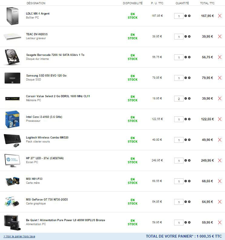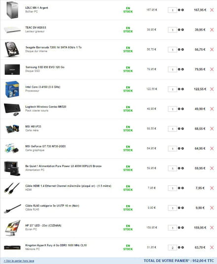 Voila Déjà, et il ya des sites (topachat/ldlc) ou certains composant sont parfois un peu moins cher que chez materiel.net.