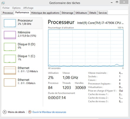 Bonjour, suite à un problème de processeur qui montait assez haut en terme d'utilisation alors que je venais de démarrer le PC ( pc puissant ). J'ai enlever le problème et maintenant je voudrais savoir par question de sécurité si le processeur aller normalement. (image ci-dessous) Config: GTX 970, 16go, i7 4970k