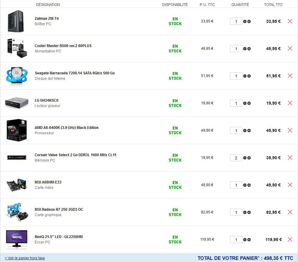 Mon budget est de 500€ avec l'écran si possible.
